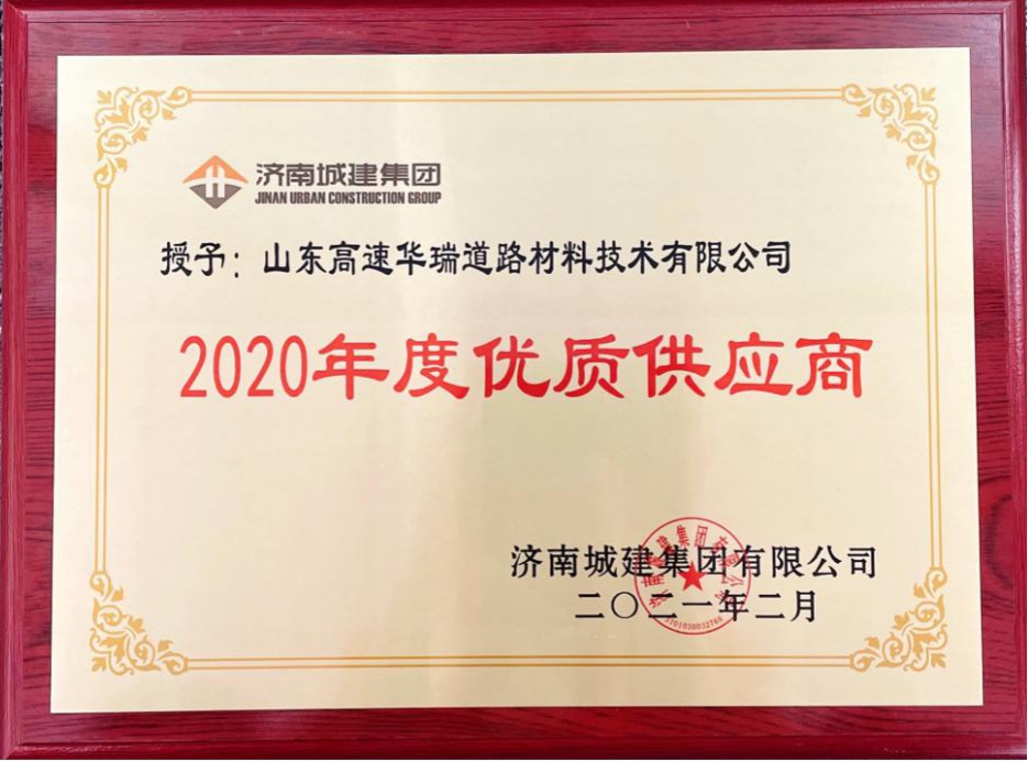 近日,山東高速華瑞道路材料技術(shù)有限公司榮獲濟(jì)南城建集團(tuán)有限公司“2020年度優(yōu)質(zhì)供應(yīng)商”榮譽(yù)稱號(hào),華瑞公司已連續(xù)五年獲此殊榮。
