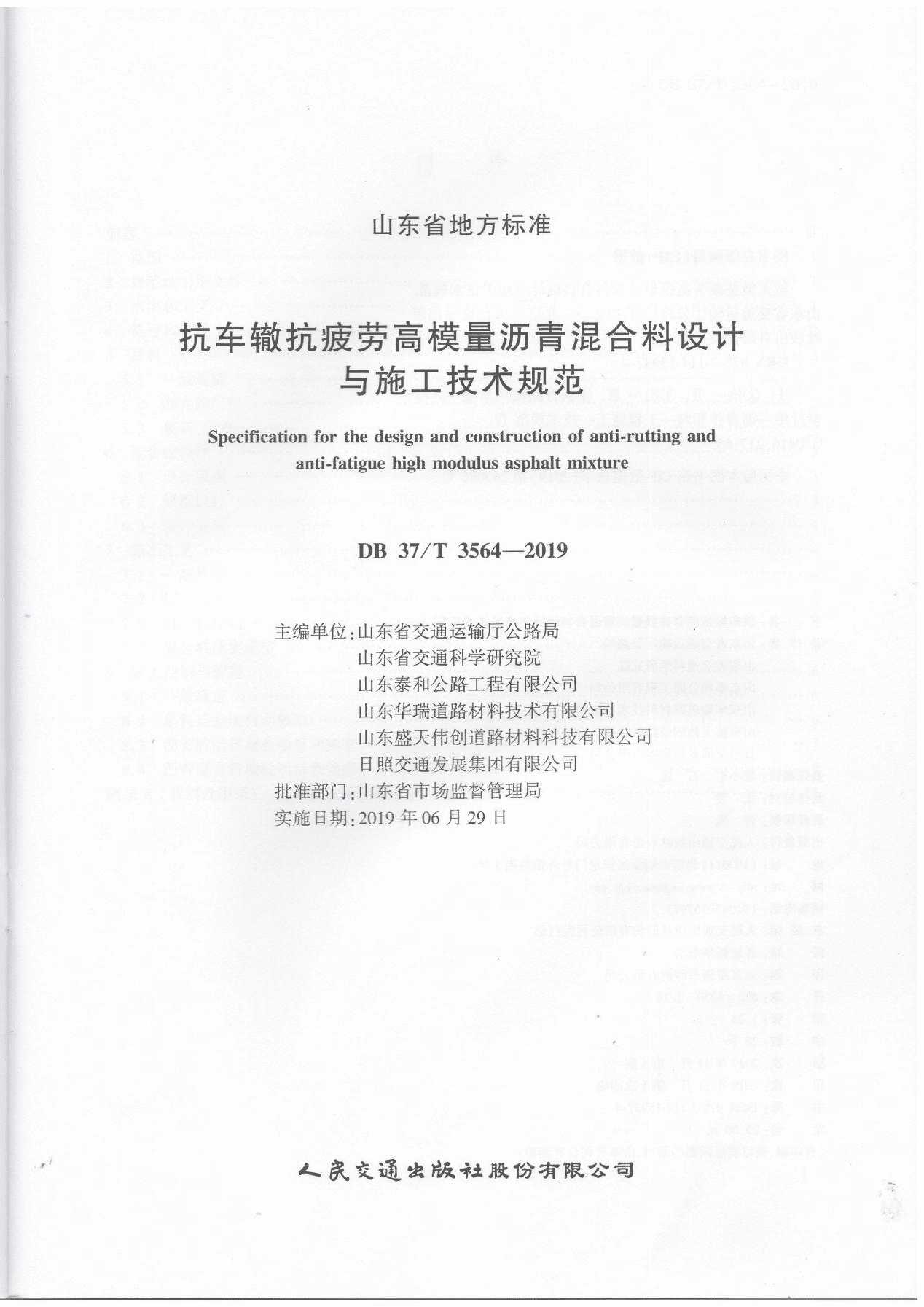 近日,公司參與編制的山東省地方標準《抗車轍抗疲勞高模量瀝青混合料設計與施工技術規(guī)范》(DB 37/T 3564-2019)正式出版印刷。