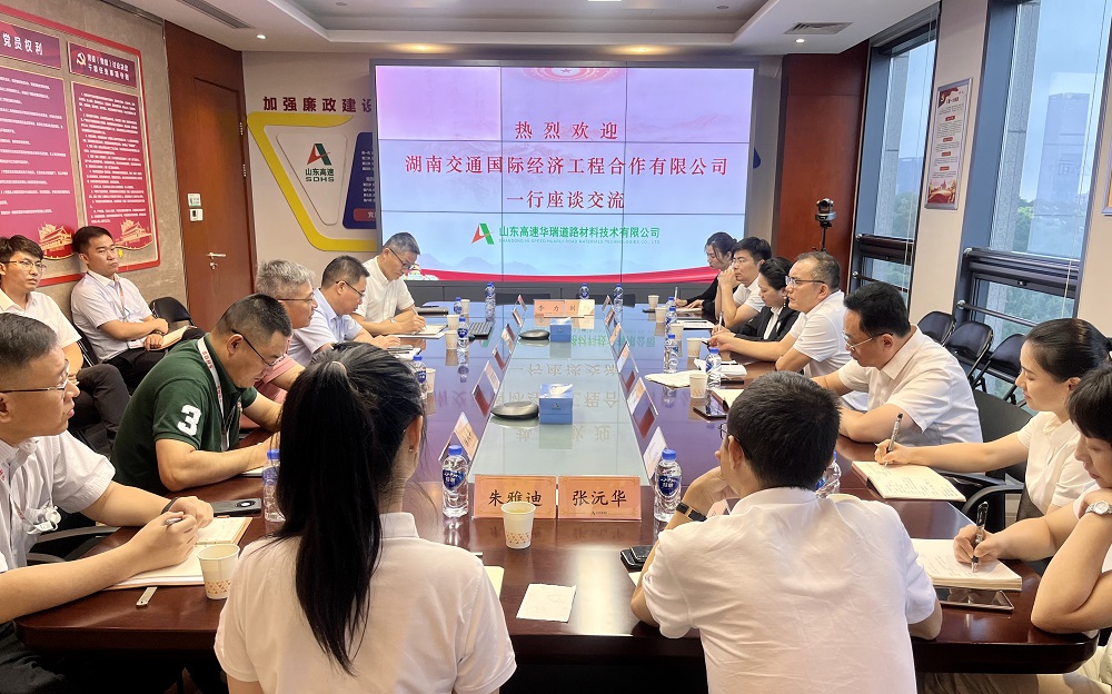 9月14至15日,湖南交通國際經(jīng)濟工程合作有限公司(以下簡稱“交通國合公司”)黨委委員、副總經(jīng)理孫宇燕,副總經(jīng)理孫波等一行到建材集團華瑞公司考察交流。山東高速建材集團黨委副書記、董事、總經(jīng)理崔若賓,黨委委員、副總經(jīng)理宋征,華瑞公司領(lǐng)導(dǎo)班子及相關(guān)部室負責(zé)人參加交流座談。