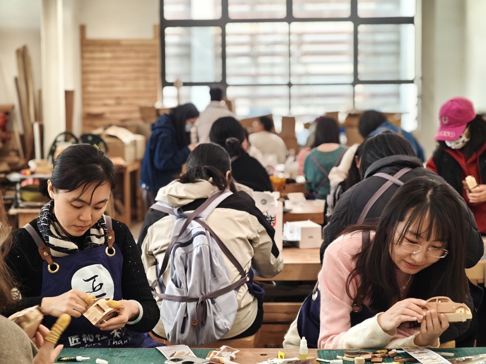經(jīng)過兩個(gè)多小時(shí)的精心制作,一件件精美的木工作品陸續(xù)誕生。造型別致的包包掛件、實(shí)用美觀的風(fēng)車,還有充滿童趣的生肖動(dòng)物和甲殼蟲汽車模型等作品,展現(xiàn)了女職工們的巧思與匠心。