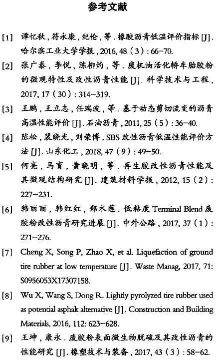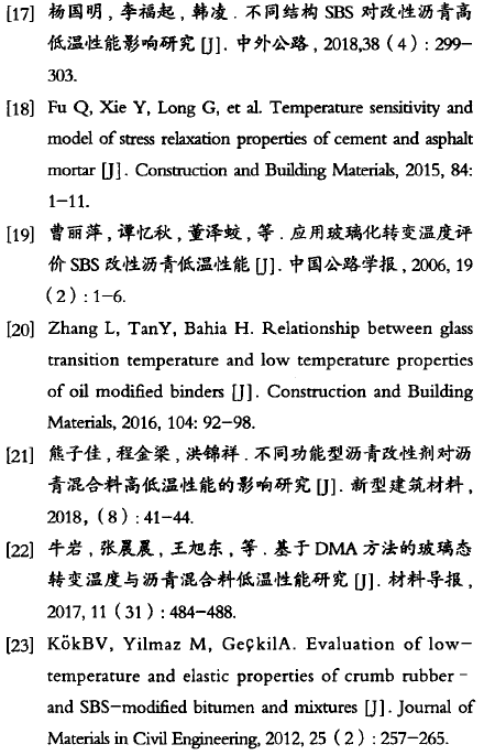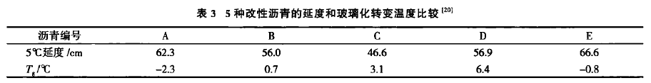 c)玻璃化轉(zhuǎn)變溫度從粘彈性角度分析改性瀝青的低溫性能,兼具理論和實(shí)際意義,可以有效反映改性瀝青的低溫性能;然而,采用該指標(biāo)評(píng)價(jià)改性瀝青的研究相對(duì)較少,其對(duì)不同種類改性瀝青低溫性能的適用性仍有待進(jìn)一步開展。