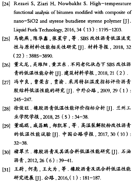 瀝青路面憑借修建、養(yǎng)護(hù)周期短,路面平整,行車舒適等優(yōu)勢被廣泛應(yīng)用于道路建設(shè)。然而,部分地區(qū)冬季嚴(yán)寒(最低溫度達(dá)-30℃以下),低溫持續(xù)時(shí)間長,雨雪天氣頻繁,致使瀝青路面受凍產(chǎn)生疲勞裂縫;此外,較大的晝夜溫差使得路表變溫顯著,產(chǎn)生溫縮裂縫,嚴(yán)重縮短了路面的使用壽命。在瀝青中加入聚合物,借助聚合物本身的結(jié)構(gòu)特性或聚合物與瀝青間的相互作用,有助于提高瀝青材料的軟化點(diǎn),降低其脆化溫度,同時(shí)提高路面的耐久性能。